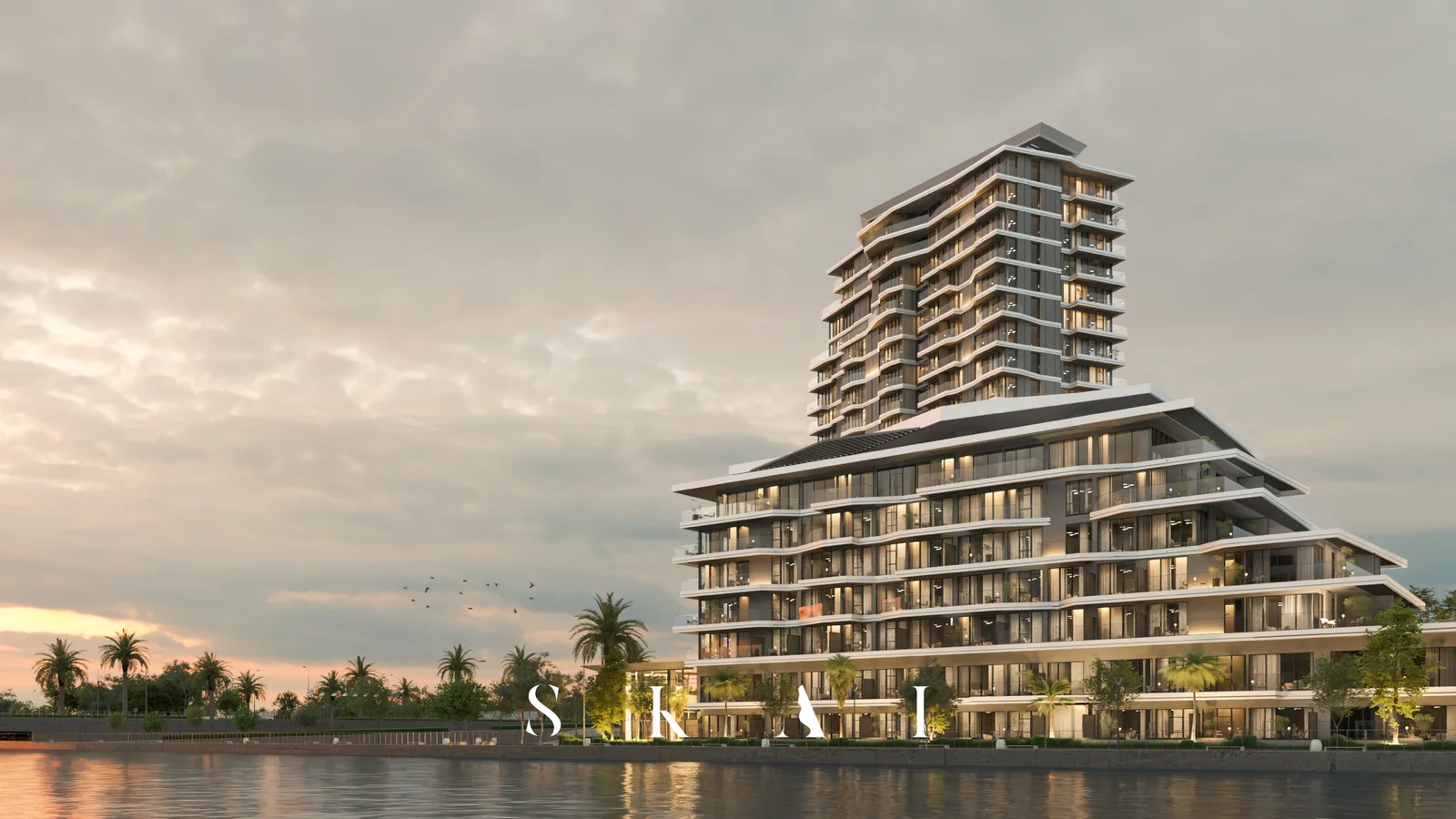 Comprised of two striking towers—one 19 floors and another 5 floors—SKAI offers a total of 272 residences, including studios, 1–2 bedroom apartments, and 3-bedroom penthouses, with floor areas ranging from 33 m² to 265 m². Towers are connected via an integrated podium, featuring a central leisure zone known as the SKAI Club, designed to deliver an upscale, waterfront-living experience.
